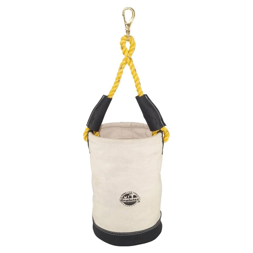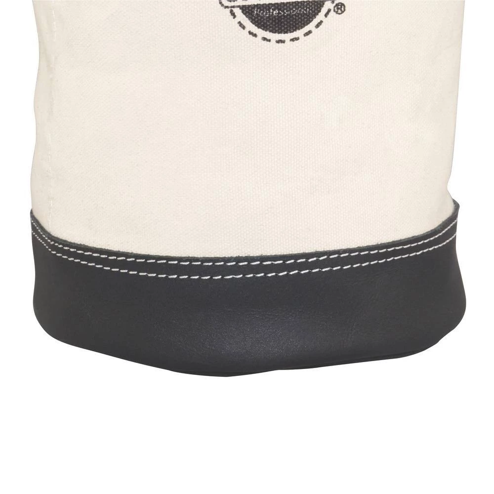 Graintex Inc. is proud to introduce Utility Canvas Bucket with Leather Bottom. Contains 1 inner pocket for small/spare parts. The bag is manufactured with Heavy-Duty 28 oz. canvas, molded with PVC and top ring with industrial grade leather bottom for extra protection and heavy webbing handle to carry. With a depth of 16 in. making it durable to hold anything within the range of 100 lbs. maximum.
