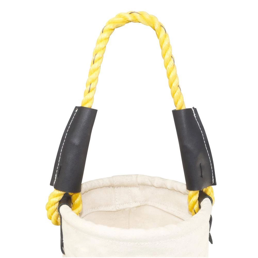Graintex Inc. is proud to introduce Utility Canvas Bucket with Leather Bottom. Contains 1 inner pocket for small/spare parts. The bag is manufactured with Heavy-Duty 28 oz. canvas, molded with PVC and top ring with industrial grade leather bottom for extra protection and heavy webbing handle to carry. With a depth of 16 in. making it durable to hold anything within the range of 100 lbs. maximum.