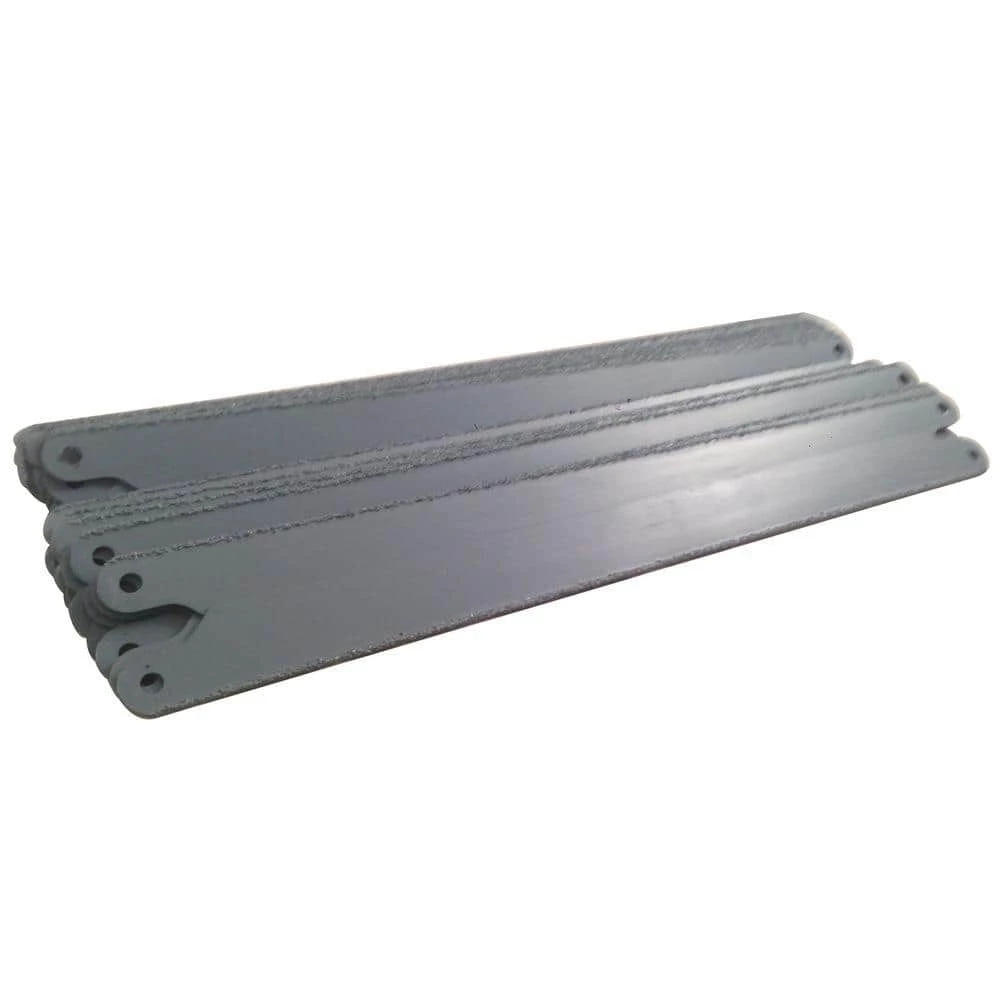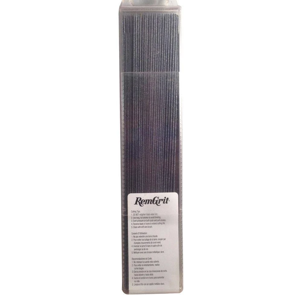 Carbide particles bonded to a steel blade. This saw cuts extremely abrasive materials with no teeth to chip or dull. Carbide grit offers the greatest wear and heat resistance. The blade cuts on both strokes.