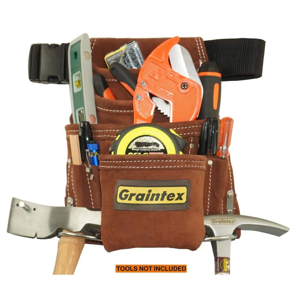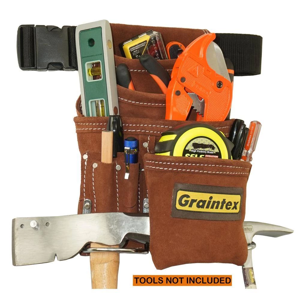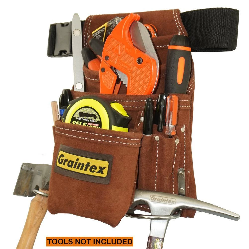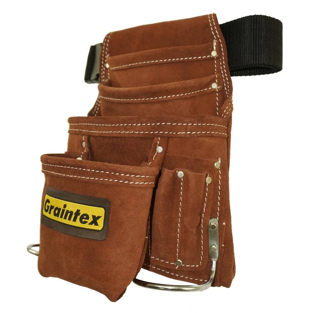 - Durable materials: Graintex 10 pocket nail and tool pouch with 2 in. webbing belt included have been manufactured from heavy-duty brown color suede leather, all our tool pouches are professionally handmade with extremely durable leather and is something you can truly depend on, since finest suede leather have been used to manufacture this tool pouch it will withstand the wear and tear of handy life, while still rustic and gorgeous in the process, Chrome plated hardware is used for durable use and longer-life
