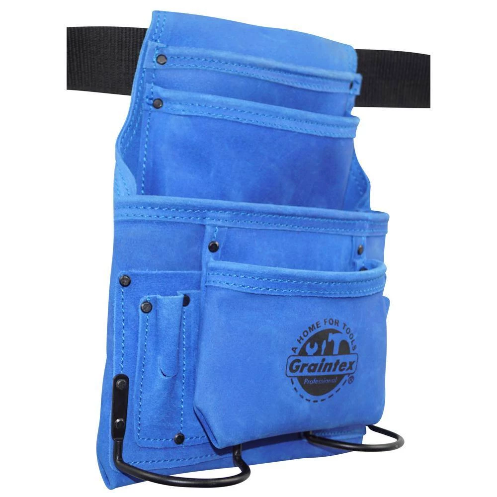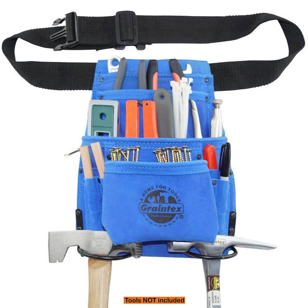 Graintex Inc. is proud to introduce tool pouches with belts. Its designed for an ease while working on hands-on projects, to help store hand tools, nails, screws and other construction accessories. Crafted in heavy-duty fine suede leather with double stitched at all stress points that heavily reinforced with rivets, black plated hardware for durability. And a web belt with PVC quick release buckle. Lightweight material, comes in different colors and quality you can trust. Warranty only against manufacturer defects.