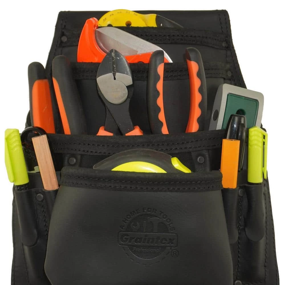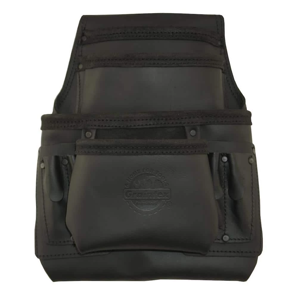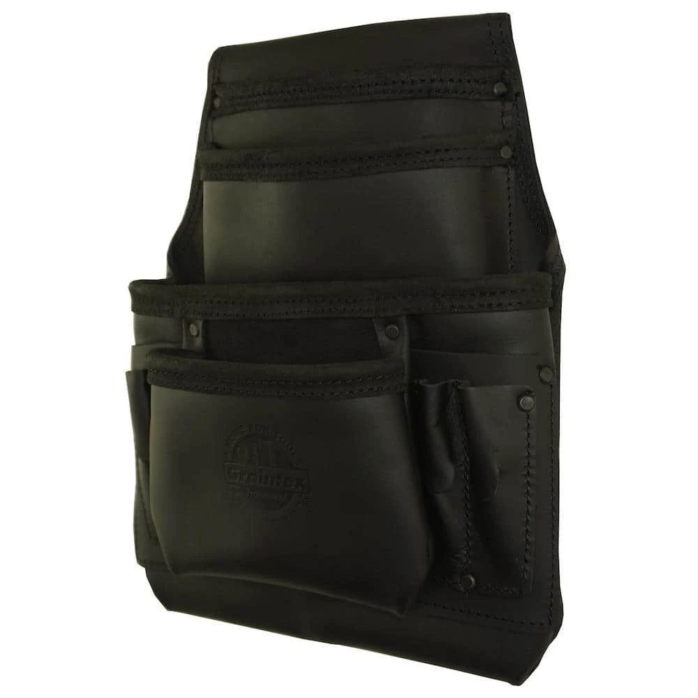 Graintex Distinctive products are handmade by our highly expert skilled craftsmen using top quality oil tanned leather, giving our customer the satisfaction with our product that can last much longer. The 10 Pocket Nail and Tool Pouch constructed with heavy duty genuine top grain oil tanned leather that is extra soft and durable. Using the superior leather hides to prepare our exceptional line of top grain oil tanned series. This specific series is treated with the top-notch quality of chemicals and oils for extra durability and strength. This exquisite tool pouch consists of ten pockets for extra convenience, the tool pouch comes with a 3 in. W tunnel slot. Designed with one large pocket that can hold multiple tools. One medium front pocket that can fit nails, medium-sized tools, two belt level inner pockets and six small pockets for screwdrivers, pens, pencils, utility knife and other miniature sets. The pockets are easily accessible, this tool pouch can be used in number of multiple other uses at the workplace or at home. with easily accessible pockets this tool pouch is a handy product for daily use.