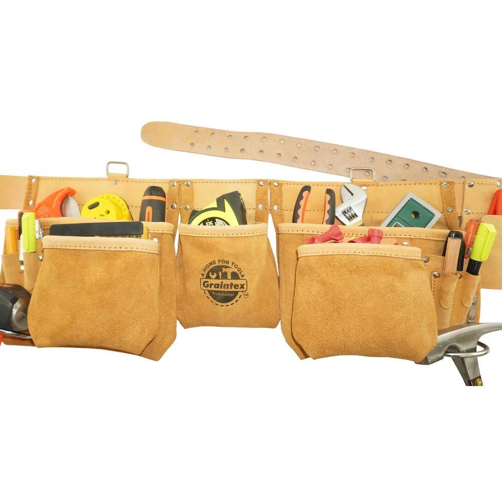 - Multiple pockets: Graintex 12 pocket work apron in beige color top grain leather has 12 multiple pockets, 2 large size main pocket for larger tools 3 medium size front pocket for nails, smaller tools etc. 6 small pockets for smaller tools, screwdrivers, bits, pens, pencils etc., 1 utility knife pocket, the pockets are easily accessible, this tool apron can be used in number of multiple other uses at the workplace or at home with easily accessible pockets this tool apron is a handy product for daily use