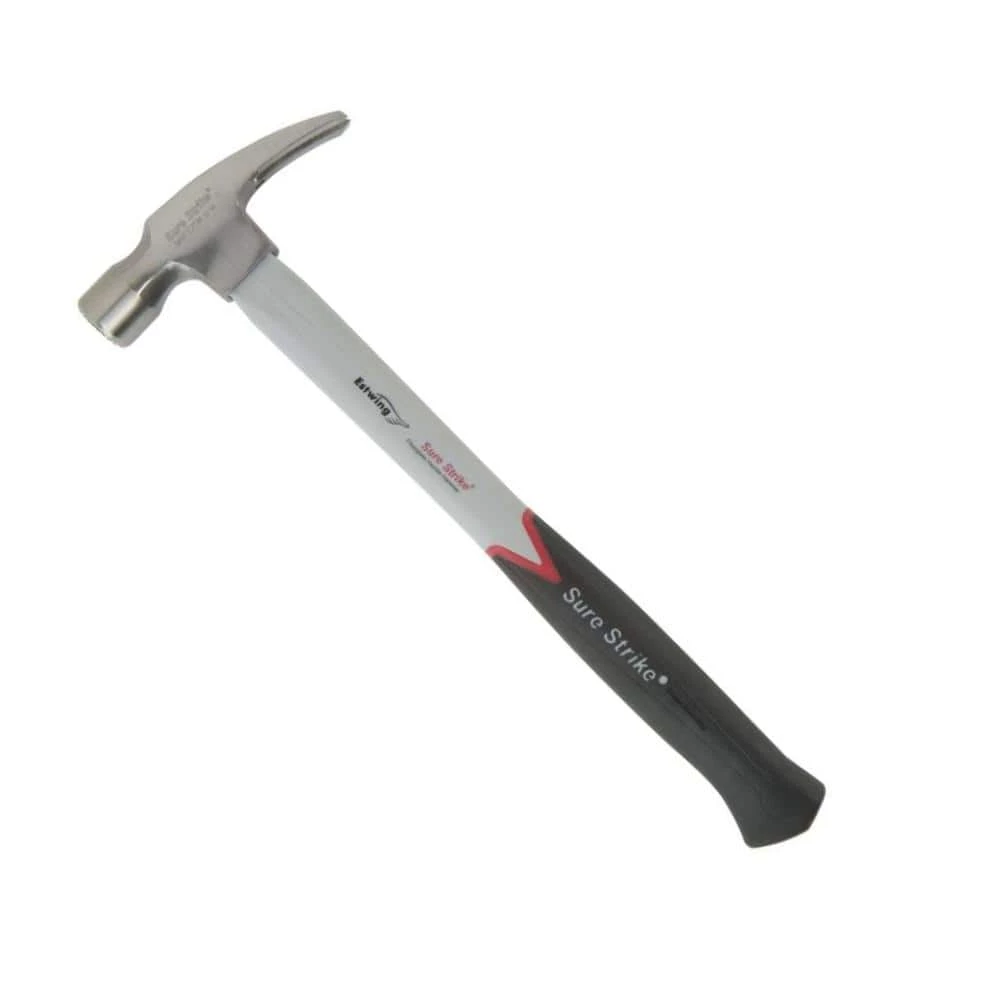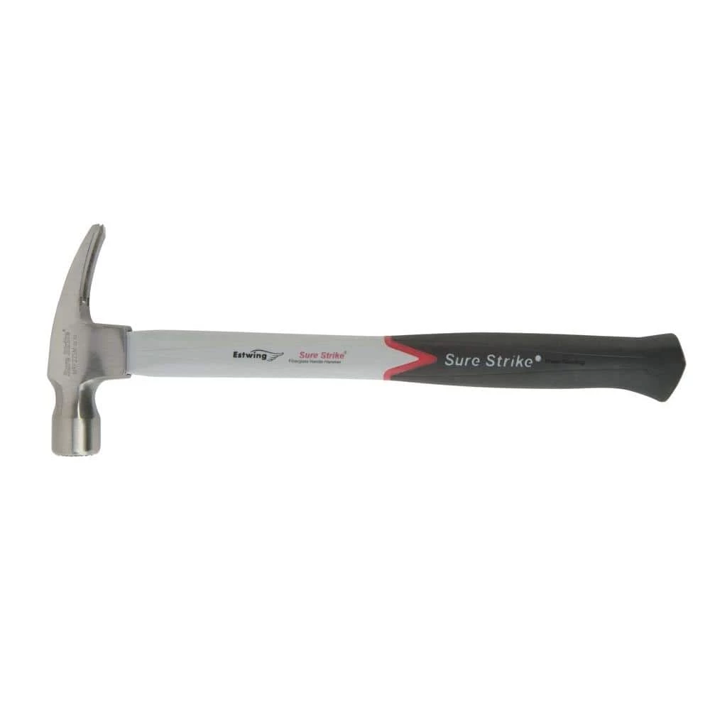 Estwing’s 16 oz. Sure Strike rip hammer has a jacketed fiberglass handle which provides overstrike protection. It has an injection molded grip and has a polished head. Protect your eyes from flying particles and dust. Always wear safety goggles. Bystanders shall also wear safety goggles.