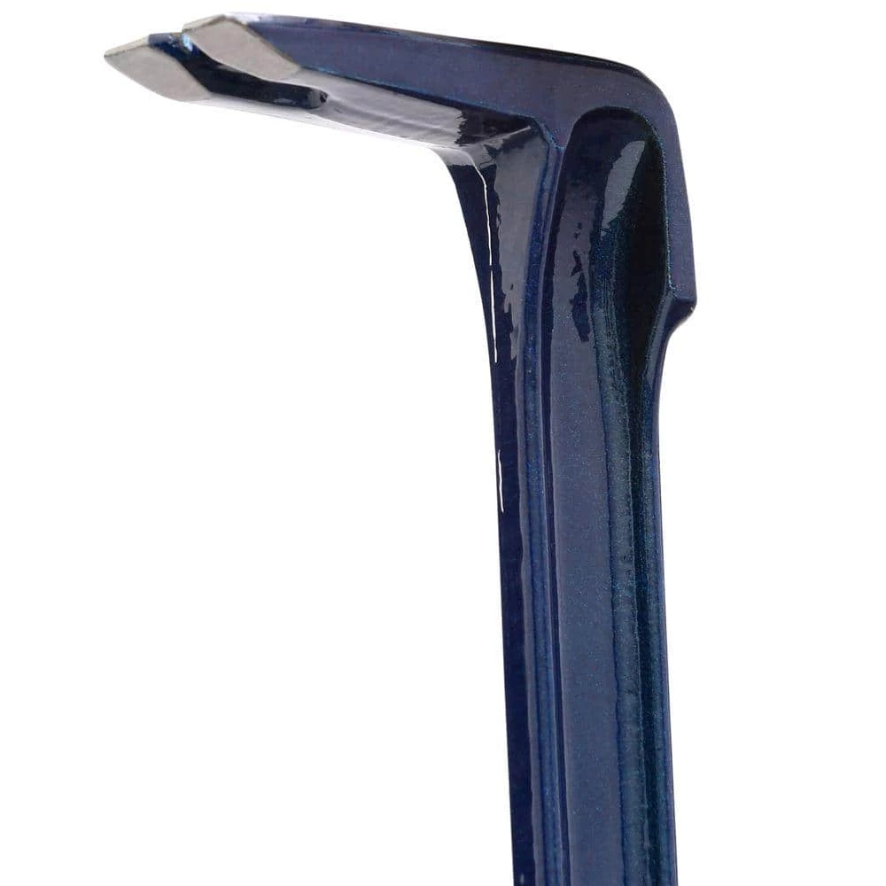 This attractive blue Estwing 18 in. I-Beam Construction Pry Bar is fully forged from fine tool steel. The I-beam construction gives this bar exceptional strength in a lightweight design for easy handling. One end features a narrow blade for easy prying, while the other end has a beveled nail slot and nail puller that enables you to access hard-to-reach areas. The rocking head provides maximum leverage to remove troublesome, embedded nails with ease.