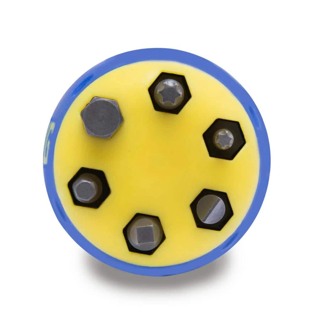 - Onboard storage – rear loading storage in handle stores 6 double ended bits with convenient slide out access