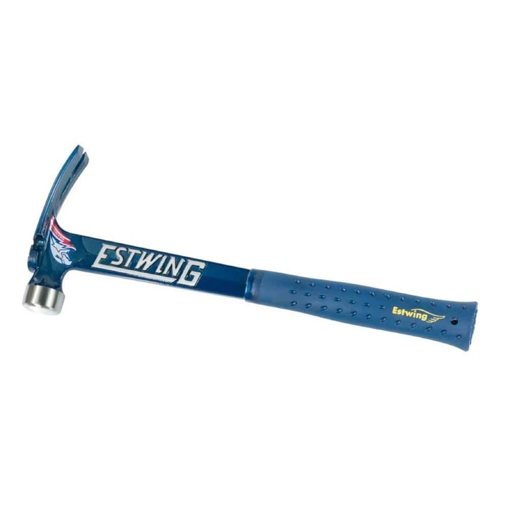 The new Ultra Series hammers from Estwing. These hammers are light, to drive nails faster and forged in 1-piece out of fine tool steel for long life and dependability. Ultra Hammers are designed with the professional in mind. Ultra Hammers are stronger than the competitors because they are forged in 1-piece of steel, no welding, and no joints that can fail. These tools have the world famous and patented Estwing Shock Reduction Grip. The grip which reduces vibration up to 70% is bonded on and will not come off. Estwing hammers are the only hammers that can make this claim. An extra nail pulling notch is built into the head of our hammers for use in tight spots. These hammers also have a magnetic nail starter in the head. This tool has unsurpassed balance and temper. This 19 oz. framing hammer has a milled face, and longer length handle. Made in USA. Protect your eyes from flying particles and dust. Always wear safety goggles. Bystanders shall also wear safety goggles.