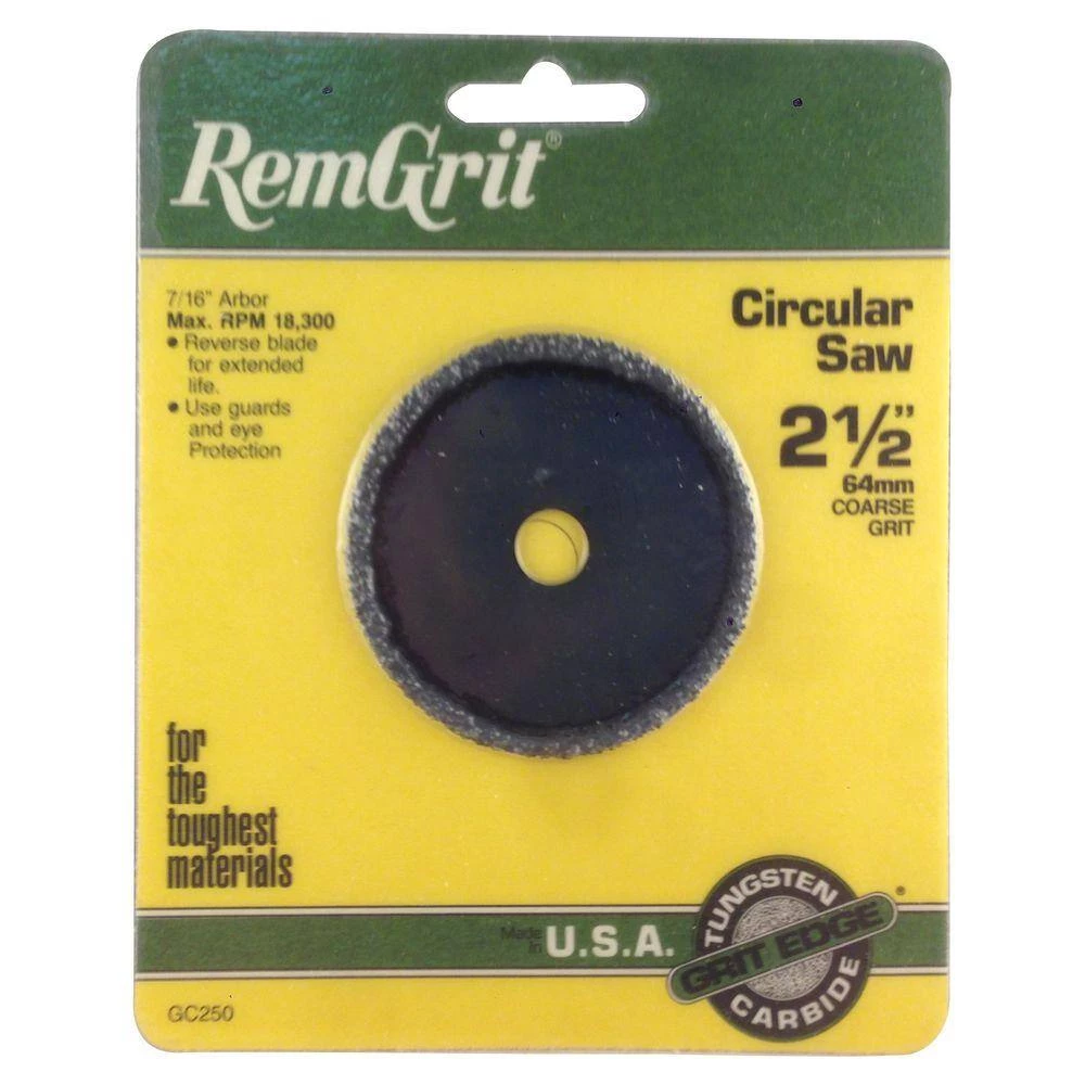RemGrit Carbide Grit Circular Saw Blades cut extremely hard abrasive materials. The cutting edge of tungsten carbide particles bonded to alloy steel back. The blade has high heat and abrasion resistance; no teeth to dull or chip; resists snagging; smooth cutting; greater wear resistance.