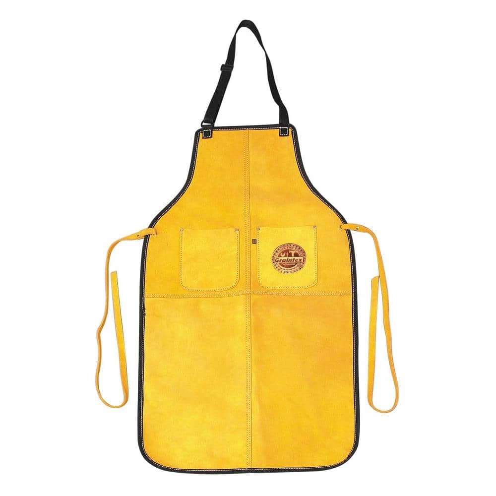 Graintex Inc. is proud to introduce leather welding apron. The welding apron has 2 pockets on the front. The wedding apron protects from hot welding sparks during welding. Heavy-duty suede leather has been for the preparation of this welding apron.