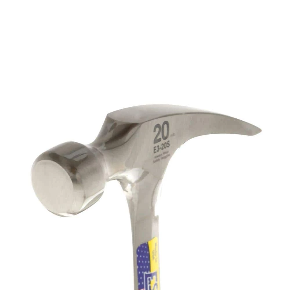 This 20 oz. rip claw nail hammer is forged in 1-piece solid steel, and fully polished. Balance and temper are unsurpassed. It has a bonded and molded on Shock Reduction Grip that reduces shock up to 70% and will not come off. Estwing hammers are the only hammers that can make this claim. Both the head and handle are forged in 1-piece solid steel. This is the perfect hammer for general, and light to medium duty. Nail hammers are designed for striking common and finishing nails and nail sets. Made in USA. Protect your eyes from flying particles and dust. Always wear safety goggles. Bystanders shall also wear safety goggles.