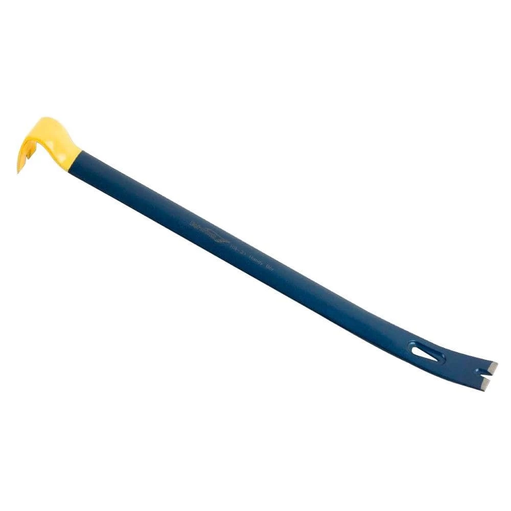 Estwing’s 21 in. handy bar is the perfect tool for construction and renovation. The Handy Bar is forged half round, for added strength and less weight. It has a wide, thin blade for easy prying. There are endless uses for Estwing’s handy bar. Attractive blue and yellow paint with polished ends, this tool can pull a variety of fasteners and is extremely strong and durable. Protect your eyes from flying particles and dust. Protect your eyes from flying particles and dust. Always wear safety goggles. Bystanders shall also wear safety goggles.