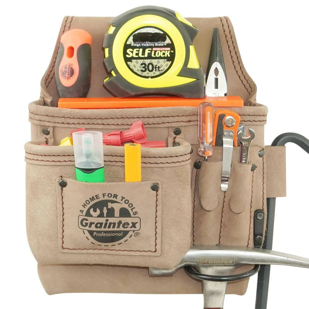5-Pocket Left Handed Beige Top Grain Leather Tool Pouch by Graintex