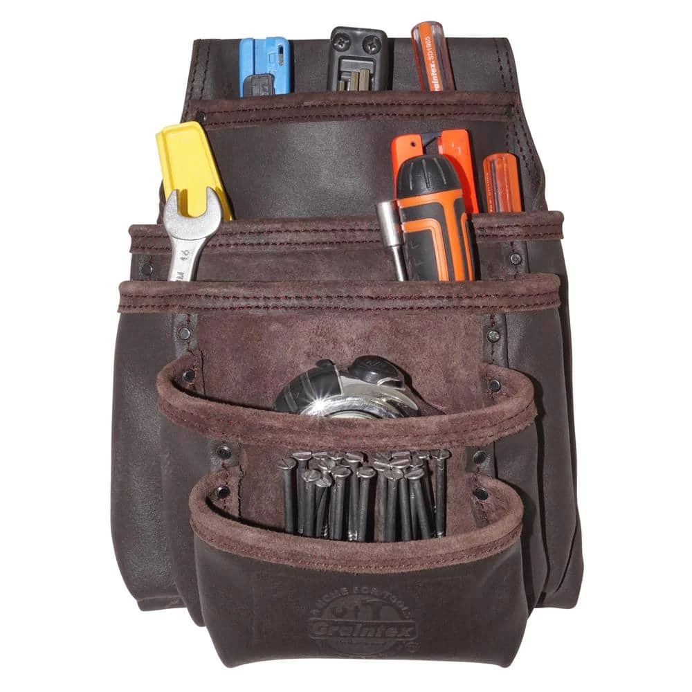- Durable materials: Graintex 5-pocket nail and tool pouch have been manufactured from heavy-duty oil tanned leather, all our tool pouches are professionally handmade with extremely durable leather and is something you can truly depend on, since finest oil tanned leather have been used to manufacture this tool pouch it will withstand the wear and tear of handy life, while still rustic and gorgeous in the process, black plated hardware is used for durable use and longer-life