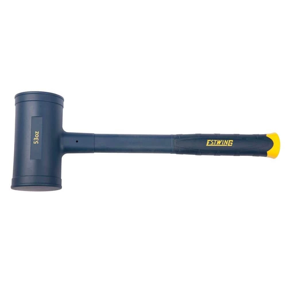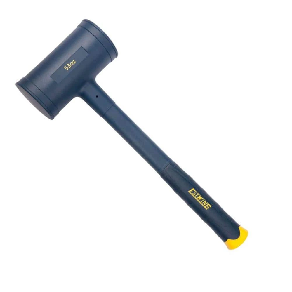 Estwing’s 53 oz. dead blow hammer has power from within through the movement of hundreds of steel shot for maximum power and control. Steel canister, with steel shot, and steel handle are completely encased in polyurethane, which is oil and chemical tolerant. Eliminates or minimizes denting and marring. Reduces swing fatigue, sting and vibration. Protect your eyes from flying particles and dust. Always wear safety goggles. Bystanders shall also wear safety goggles.