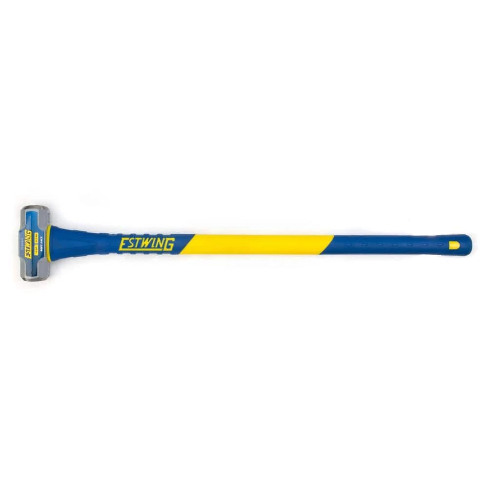 Tackle heavy-duty construction, automotive, agricultural or industrial projects with the hard-hitting power of this Estwing soft face sledge hammer. Designed and built for heavy-duty use, this hammer features a 6 lbs. forged alloy steel head that is case hardened and then tempered to reduce it’s striking end hardness to within 30-35 HRC. The resulting softer head helps it mushroom when striking harder materials and thus prevent damage to struck objects making it ideal for projects where a regular sledge hammer would seriously damage or break the struck work piece. This head is mounted to a 36 in. L, fiberglass handle that is double injected for increased strength and durability. A textured rubber overlay on the handle provides a comfortable, ergonomic and secure grip in both grip positions while also helping to dampen vibrations. Below the striking head the handle and rubber overlay are thicker to provide increased overstrike protection to prevent damage from missed hits.