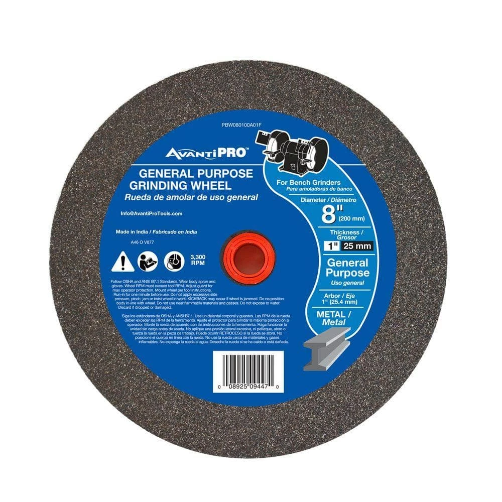 Avanti Pro Bonded General Purpose Bench Grinding Wheel is designed for general metal grinding, sharpening and shaping. This bench grinding wheel can be used dry, with water or oil. Includes 3 bushings: 7/8 in., 3/4 in. and 5/8 in.