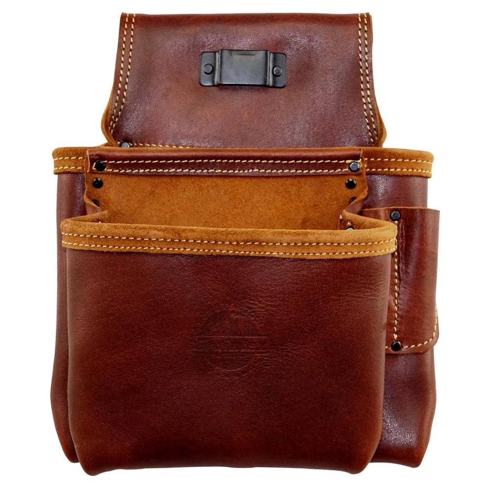 Graintex Inc. is proud to introduce a 8 Pocket Framers Professional Tool Pouch Ambassador Series made with top grain leather. Its designed for easy accessibility, extra durability and handy expandability. Contains 1 large, 1 medium and 6 small pockets for small to hand tools. Double stitched at all stress points reinforced with rivets and black plated hardware. Carries a belt tunnel slot that can fit a 3 in. W belt.