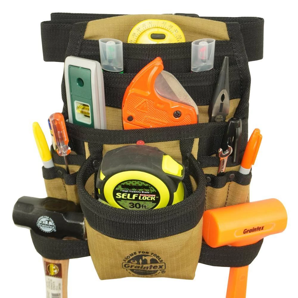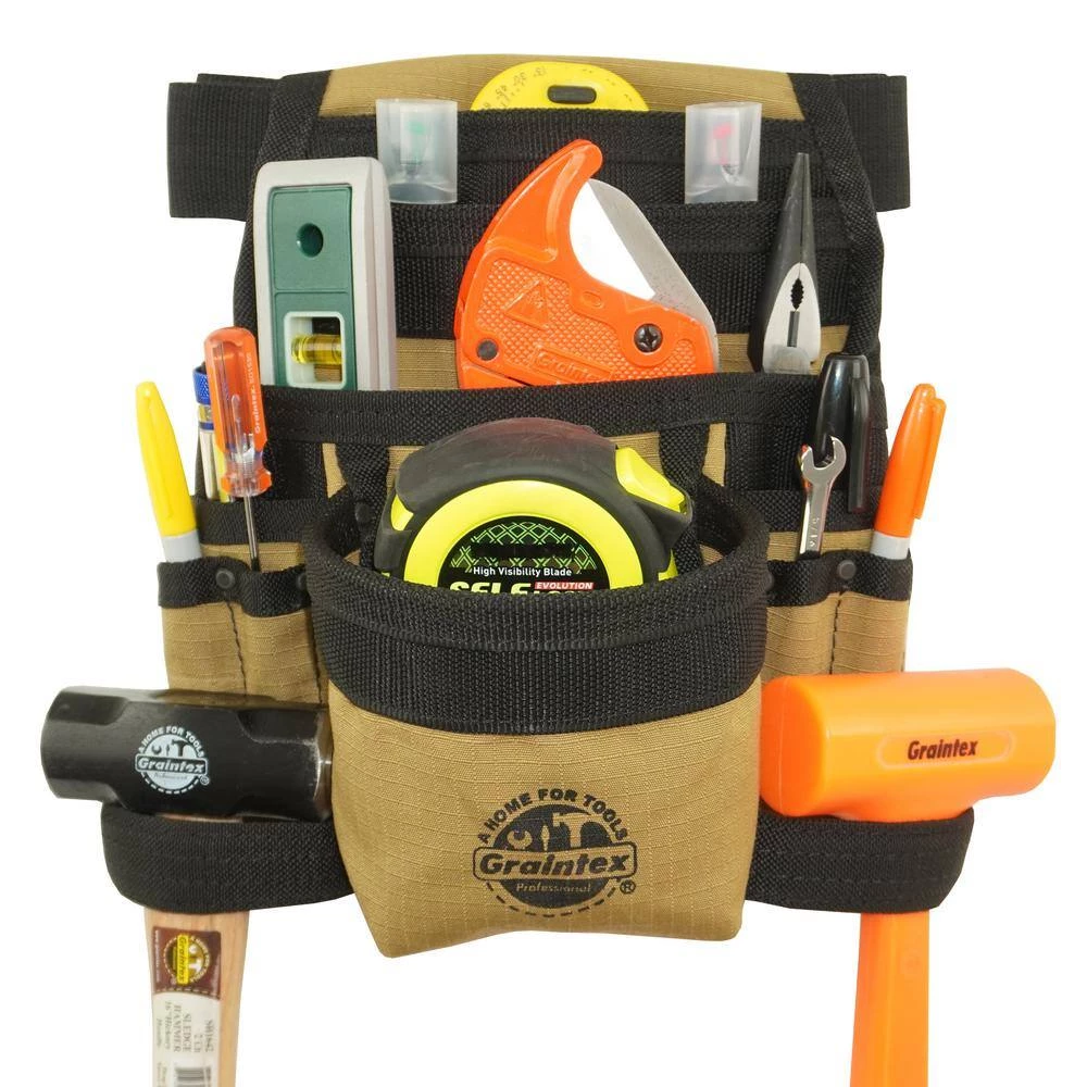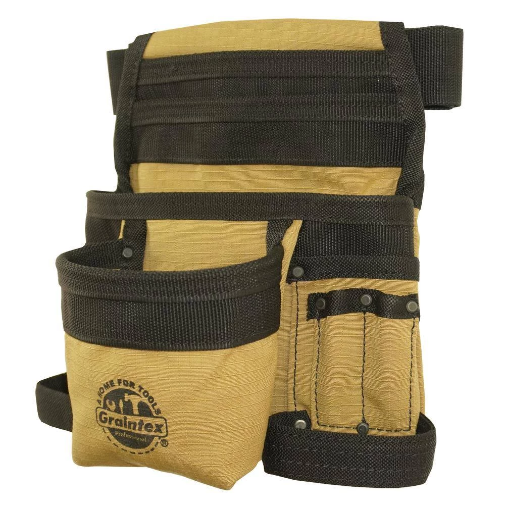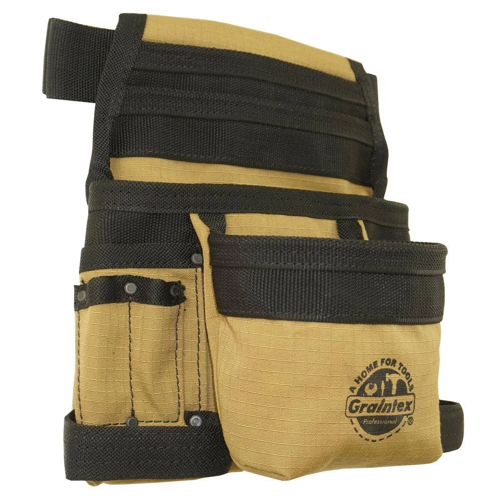Graintex DISTINCTIVE PRODUCTS are handmade by our highly expert skilled craftsmen using heavy-duty top leveled canvas, giving our customer the satisfaction with our product that can last much longer. The 10 Pocket finisher nail & tool pouch constructed with khaki color rip-stop canvas that is extra soft and durable. This exquisite tool pouch consists of 10 pockets for extra convenience. The finisher tool pouch has 1 large pocket that can hold multiple tools. 1 medium sized pocket that can fit nails, medium-sized tools, 2 belt level inner pockets, and 6 small pockets for screwdrivers, pens, pencils, utility knife, and other miniature sets. The pockets are easily accessible, this finisher tool pouch can be used in number of multiple other uses at the workplace or at home. With easily accessible pockets this tool pouch is a handy product for daily use. The finisher tool pouch include 2 hammer loops fits all standard sized hammers. This finisher tool pouch can be used for multiple projects such as carpentry, housework, gardening, garage projects, electricians, construction, etc. This finisher tool pouch is double stitched and reinforced with steel rivets for extra durability.