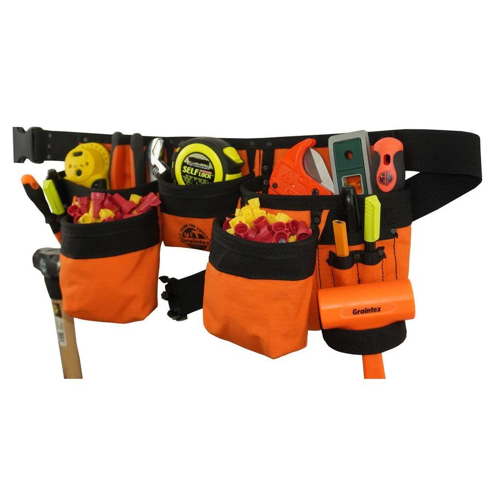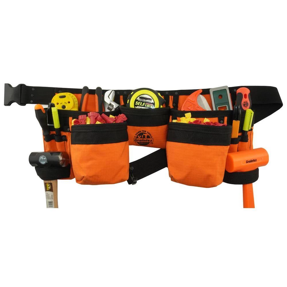 Graintex DISTINCTIVE PRODUCTS are handmade by our highly expert skilled craftsmen using heavy-duty top leveled canvas, giving our customer the satisfaction with our product that can last much longer. The 11 Pocket Finisher Tool Apron constructed with orange color rip-stop canvas that is extra soft and durable. This exquisite finisher tool apron consists of 11 pockets for extra convenience. Designed with a 2 in. webbing belt, following with 2 large pocket that can hold multiple tools. 3 medium pocket that can fit nails, medium-sized tools, and 6 small pockets for screwdrivers, pens, pencils, utility knife, and other miniature sets. The pockets are easily accessible, this finisher tool apron can be used in number of multiple other uses at the workplace or at home. With easily accessible pockets this tool pouch is a handy product for daily use. The finisher tool apron has 2 in. webbing belt with a PVC quick release that can fit waist from 28 in.- 50 in. and 2 hammer loops which can fit all standard sized hammers. This finisher tool apron can be used for multiple projects such as carpentry, housework, gardening, garage projects, electricians, construction, etc. This finisher tool apron is double stitched and reinforced with steel rivets for extra durability.