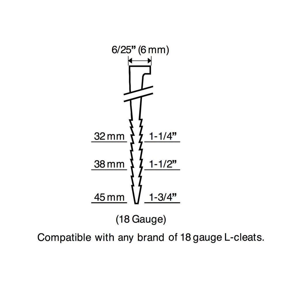 - Compatible with 18 gauge L-cleats from 1-1/4 in, to 1-3/4 in.