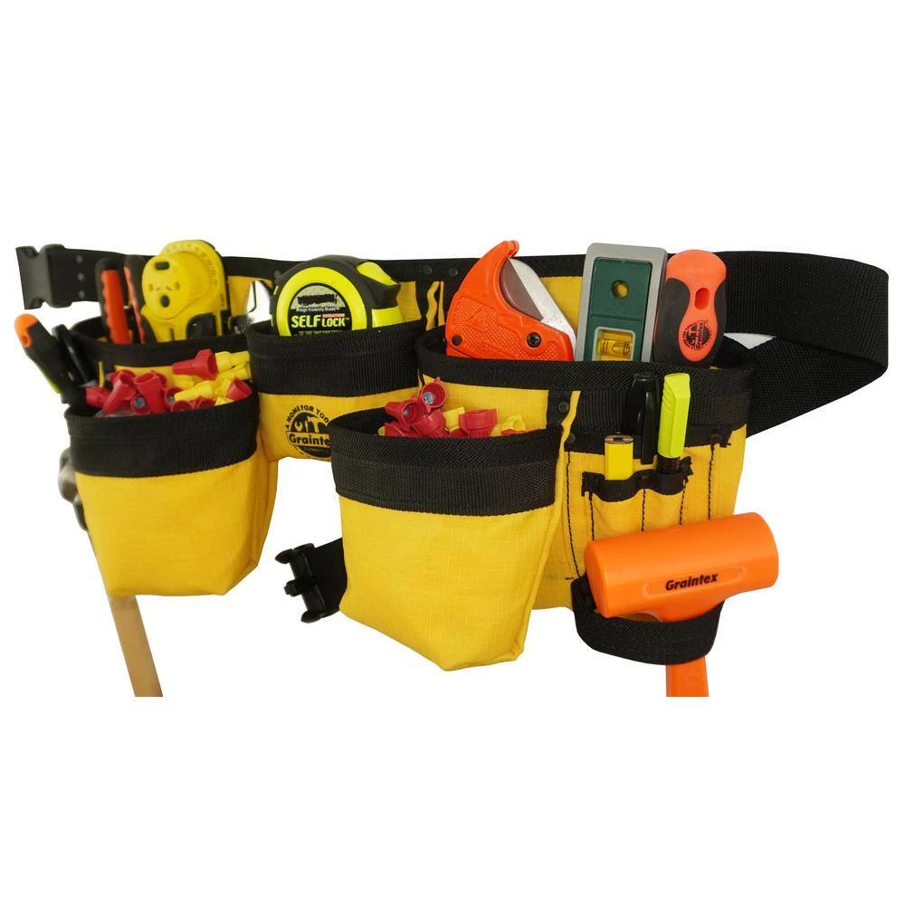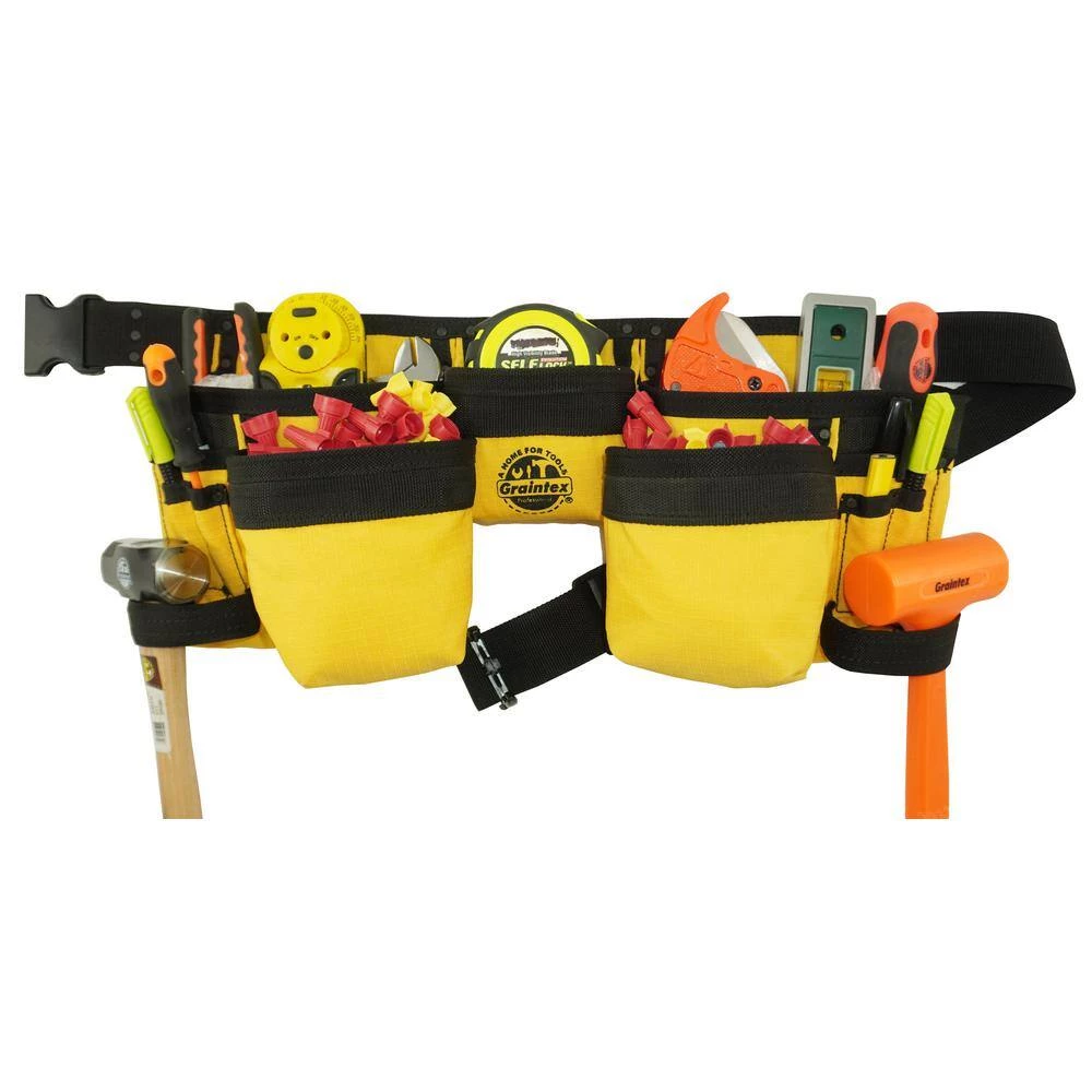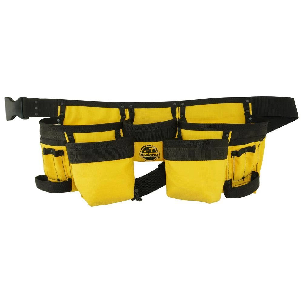 Graintex DISTINCTIVE PRODUCTS are handmade by our highly expert skilled craftsmen using heavy-duty top leveled canvas, giving our customer the satisfaction with our product that can last much longer. The 11 Pocket Finisher Tool Apron constructed with yellow color rip-stop canvas that is extra soft and durable. This exquisite finisher tool apron consists of 11 pockets for extra convenience. Designed with a 2 in. webbing belt, following with 2 large pocket that can hold multiple tools. 3 medium pocket that can fit nails, medium-sized tools, and 6 small pockets for screwdrivers, pens, pencils, utility knife, and other miniature sets. The pockets are easily accessible, this finisher tool apron can be used in number of multiple other uses at the workplace or at home. With easily accessible pockets this tool pouch is a handy product for daily use. The finisher tool apron has 2 in. webbing belt with a PVC quick release that can fit waist from 28 in.- 50 in. and 2 hammer loops which can fit all standard sized hammers. This finisher tool apron can be used for multiple projects such as carpentry, housework, gardening, garage projects, electricians, construction, etc. This finisher tool apron is double stitched and reinforced with steel rivets for extra durability.